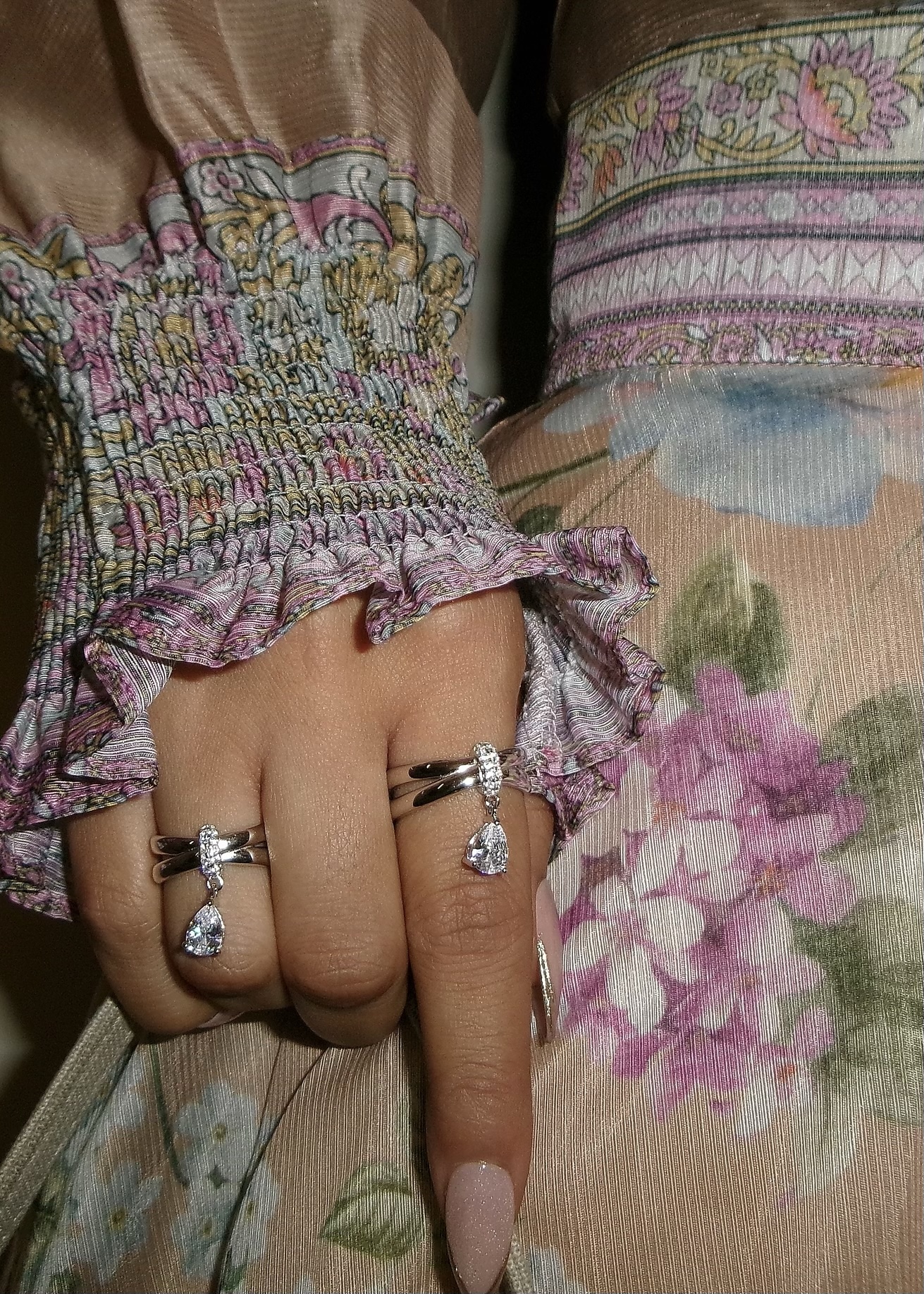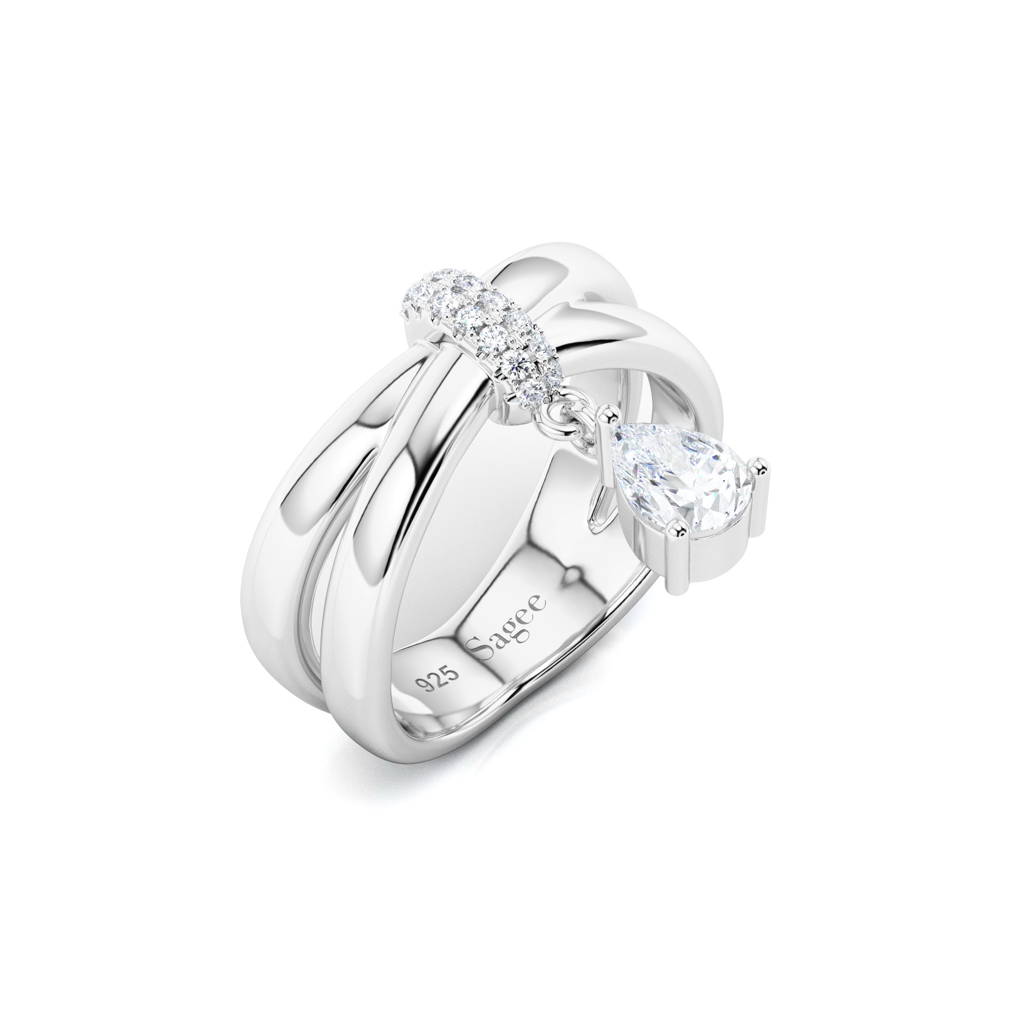This ring embodies modern luxury with its sleek cross-band design, that captures timeless elegance with a contemporary edge.
